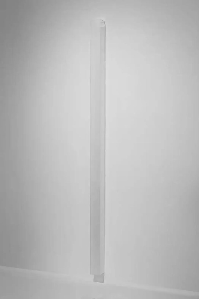 Spaced at generous distances along the walls of Franklin Parrasch’s cleanly-renovated Upper East Side townhouse, nine of Ron Cooper’s lacquered Plexiglas Vertical Bars, each 8’ x 3 5/8” x 3 5/8”, stand guard over the mute transmission of light passing through the gallery’s lavishly open space.